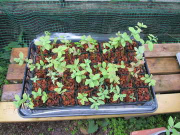 ビニール温室内の他の苗にも、1週間ぶりに灌水しました。