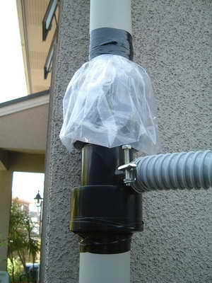 手元で止められる器具が倉庫にありました。これを使って、手元で水を止めておきます。