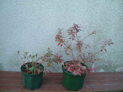 左は、購入してすぐ地植にしたもので、右は、ポットで育てたものです。