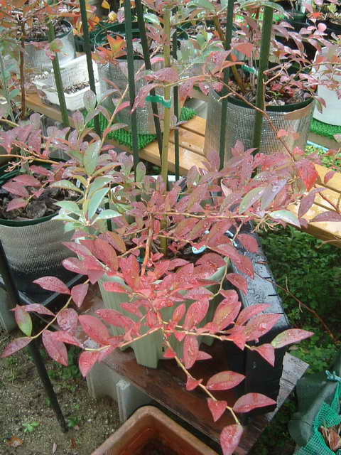 ブルーベリー苗の生産者は、商品価値をあげるために、秋になったら、太陽にあまりあてず、肥料も多めにしているのではないでしょうか。