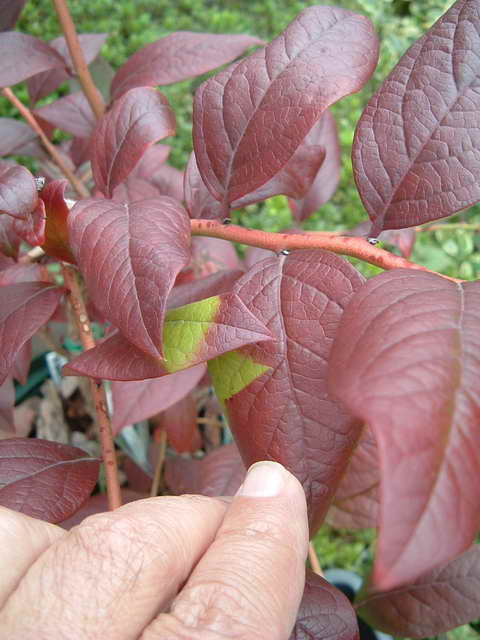 このデライトだけでなく、園芸店のブルーベリーは葉が青々としています。