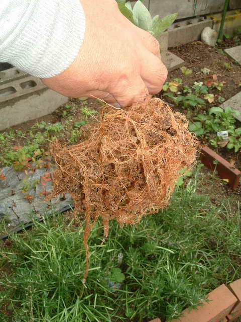 ↓植木屋さんの土は、黒墨土(くろぼくど)に鹿沼土をまぜているようです。よく育っています。
