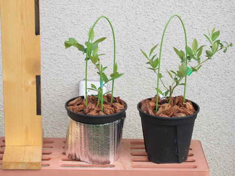 左だけ鉢カバーをしているように見えますが、右のものはケースに日よけがしてあります。