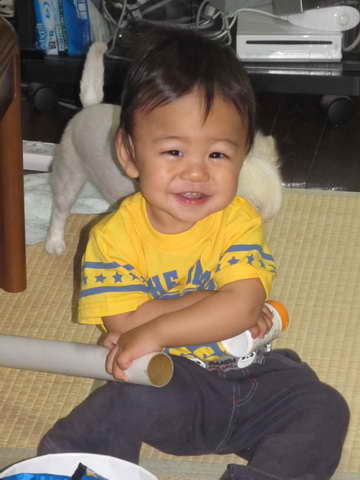 最近、たっくんにカメラを向けると、必ずと言っていいほど愛想笑いをします。