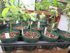 省力化を進めるため、比較的よく育っている苗は、5号鉢に鉢上げしました。