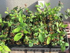 それで、鉢上げも、成長の悪い苗が、酸性の土(ブルーベリー用土)で育ちが良くなるかを検証してみます。