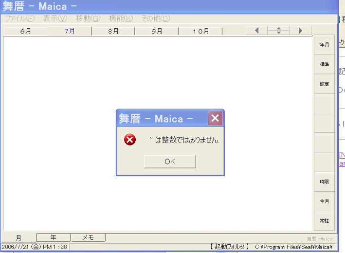 > 舞暦は整数ではありませんとメッセージがでて表示ができなくなりました。