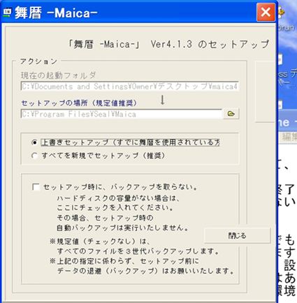 『「舞暦 -Maica-」Ver*.*.* のセットアップが終了しました。』