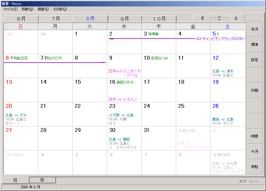 サンフレッチェ広島 8月のサンプル「舞暦 -Maica-」(フリーウェア)のイメージサンプル