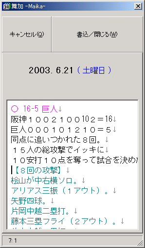 「舞加」の日々の追加修正フォーム