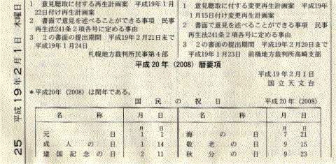 分厚い官報がまとめてある資料から、2007年2月1日発行分より、目的の「2009年の祝祭日が掲載されている記事」を探しました。