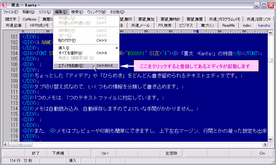 ◆タブ式のテキストエディタの弱点を補うため、別の編集フォーム(小貫太)を開くことが出来ます。