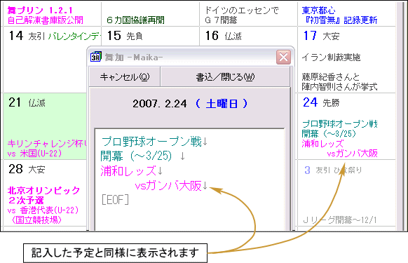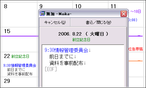 しかし、「舞加」の一番の有用性は、予定を「データ」としてでなく、「文章」として入力できることです。