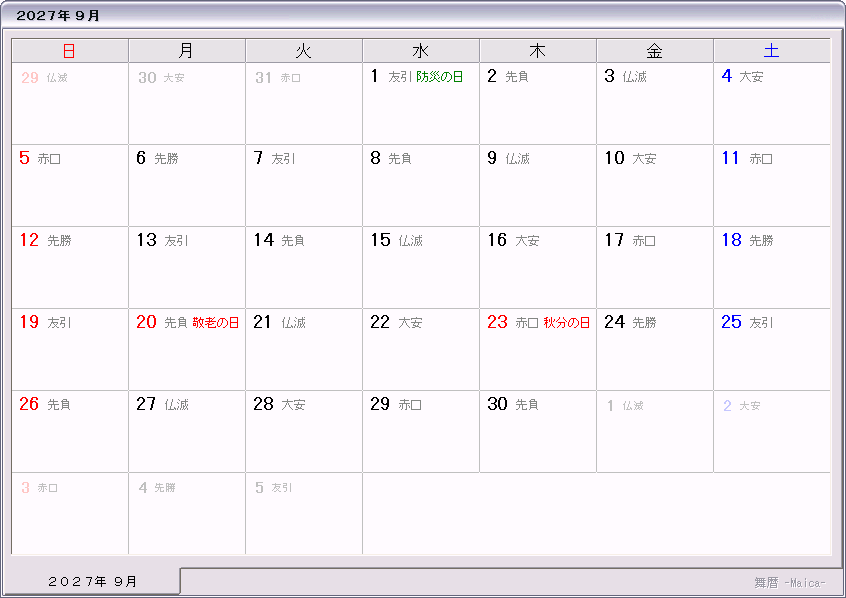 9月第3月曜日、「多年にわたり社会につくしてきた老人を敬愛し、長寿を祝う。」 |