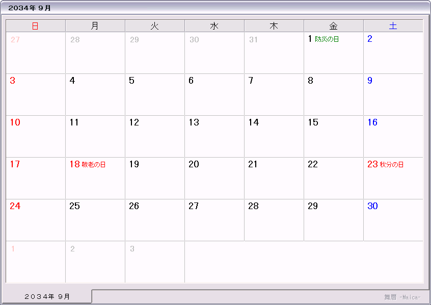 9月第3月曜日、「多年にわたり社会につくしてきた老人を敬愛し、長寿を祝う。」 |
