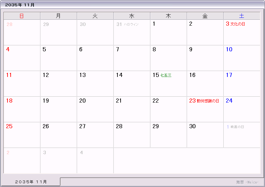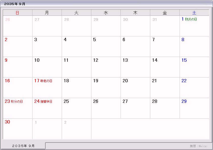 9月第3月曜日、「多年にわたり社会につくしてきた老人を敬愛し、長寿を祝う。」 |